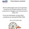Submit paid or volunteer jobs that you’d like listed here to WebmasterMACT@gmail.com. Listings are FREE for current MACT member theatres. Listings will be for 1 month or until the deadline date requested by the submitter. (Please let us know at the same e-mail address when the position has been filled or is otherwise no longer available, if before the requested end date for the listing.)